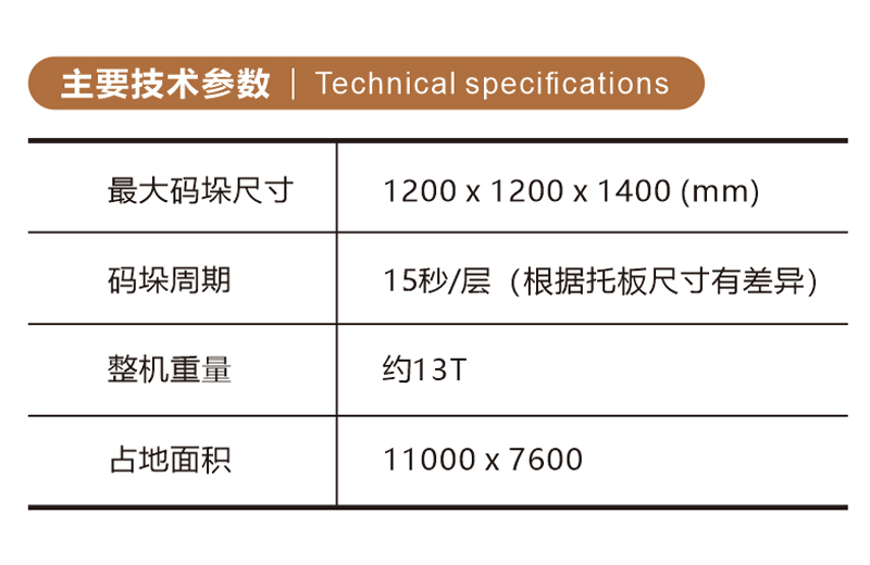 碼垛周期 | 15秒/層 (根據(jù)托板尺寸有差異,誤差在1-3秒) |